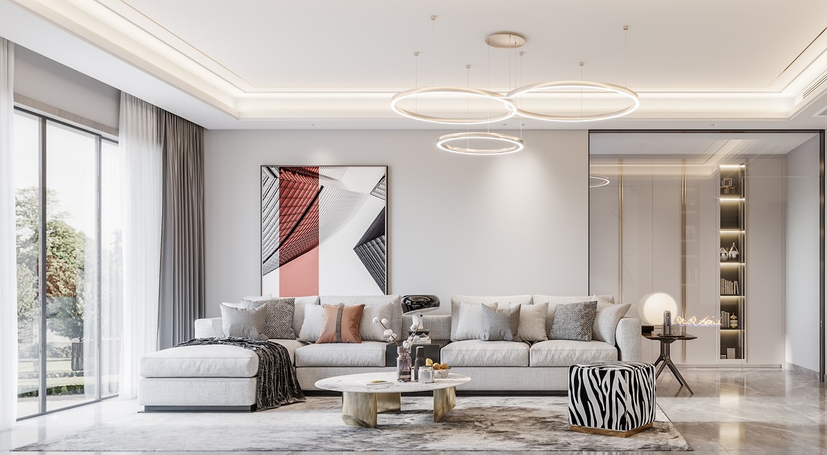 從字面意思理解,無(wú)主燈設(shè)計(jì)就是空間里沒(méi)有常規(guī)的吊燈、吸頂燈、壁燈等;比如客廳、餐廳、臥室的吊燈這種主光源,而是采用射燈、筒燈、斗膽燈、軌道燈、燈帶等共同營(yíng)造的環(huán)境用光。