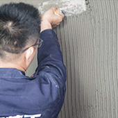 將專用瓷磚膠在墻上均勻刮糙,大大減少瓷磚脫落及開裂的概率