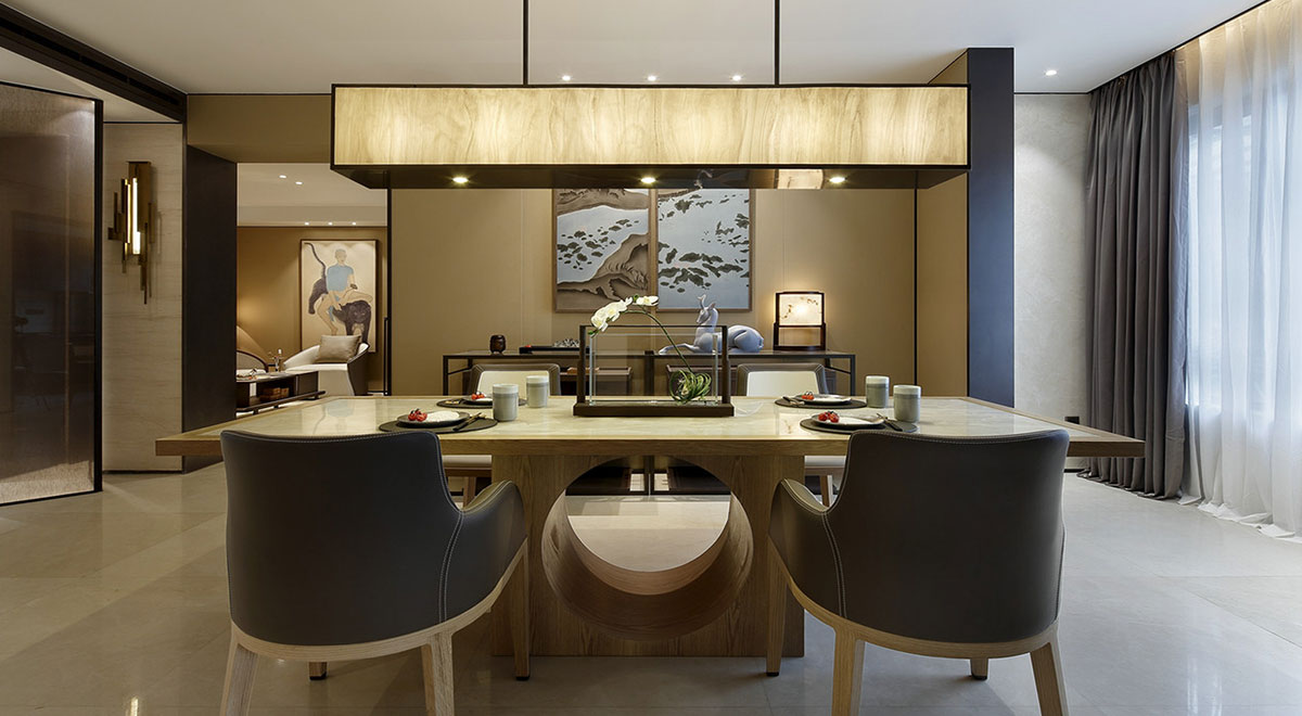 藝術(shù)無國界的特性造就了我們以東西方元素為起點(diǎn),并回歸東方靈魂的設(shè)計(jì)思路。我們堅(jiān)信最好的設(shè)計(jì)一定是蘊(yùn)含了生活智慧的設(shè)計(jì),缺乏了生活的設(shè)計(jì),就像缺少了靈魂的軀殼。有生活氣 息的氛圍才有活力。何為生活?當(dāng)代東方設(shè)計(jì)美學(xué)不是高高在上的陽春白雪,而是落在每日生活中的直觀體驗(yàn)和感受。 我們所居之所、所用之物、所往之地、無不成為這種美學(xué)的最佳載體。只有生活期間,才能喚醒我們榮譽(yù)血液中的東方基因,在當(dāng)代生活語境中安放歲月靜好...... 布藝的柔軟與石材、木墻板的硬朗搭配,在大面積自然光的潤澤下,使的空間的當(dāng)代性與閑適并存。但往往說細(xì)節(jié)決定品位,棉布的沙發(fā),主布以或深或淺有層次區(qū)分的灰色及凹凸質(zhì)感的布藝組合搭配 ,恰到好處的點(diǎn)綴,使室內(nèi)裝置與材質(zhì)構(gòu)建語匯之間,產(chǎn)生一種簡單、純粹、舒適共鳴的對話形式,體現(xiàn)品質(zhì)感和空間感。