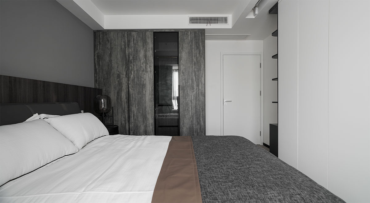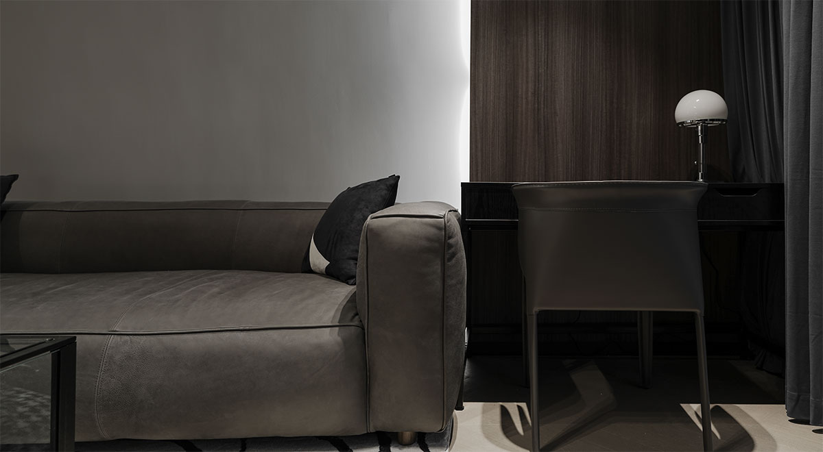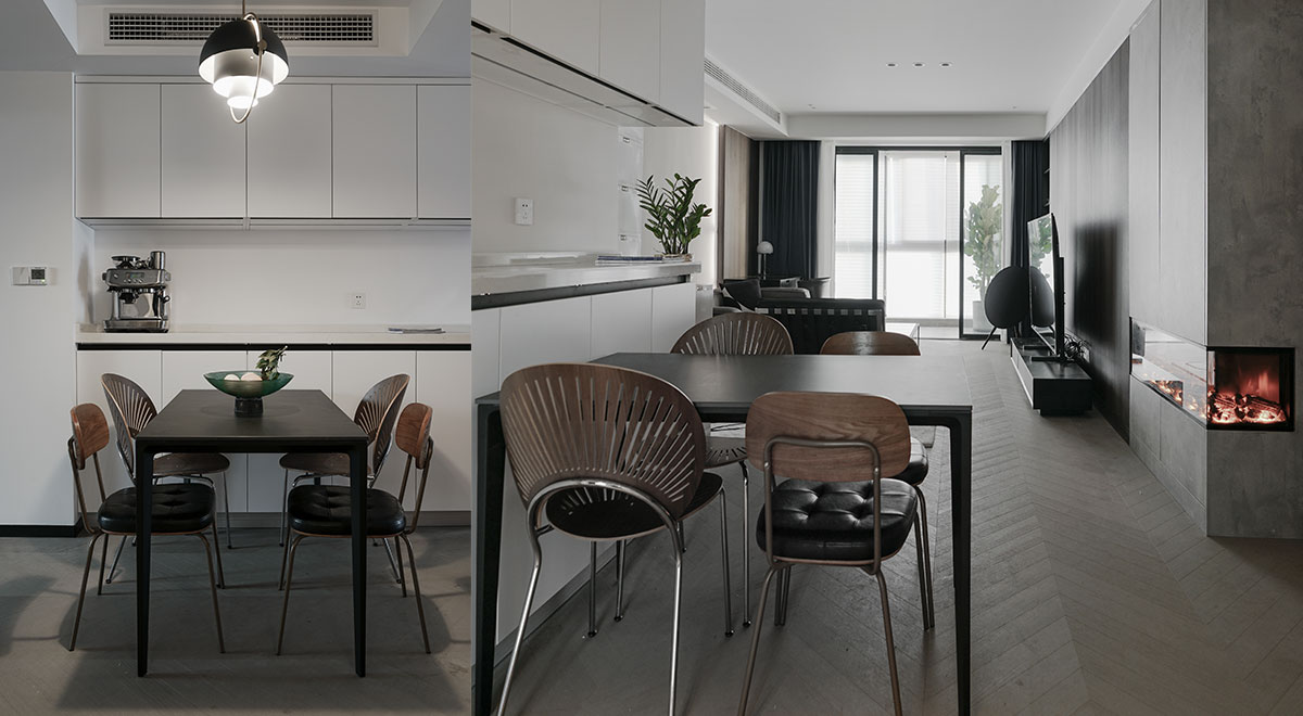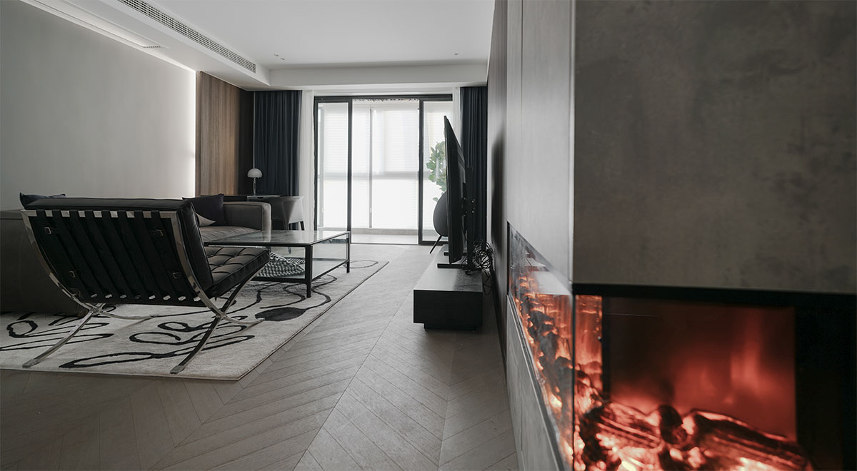 以極簡風(fēng)格為主,利用軟裝打造極具質(zhì)感的家。巴塞羅那椅、摩登復(fù)古的波浪鏡,彰顯屋主的居家品味。