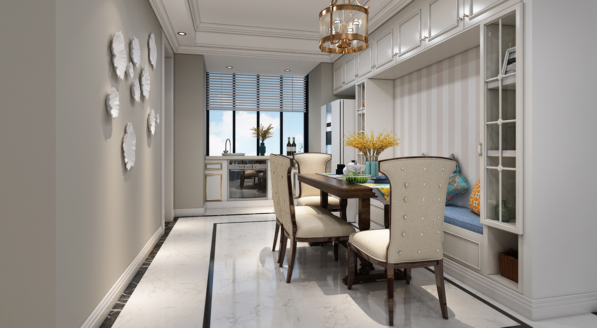 本案業(yè)主有兩個(gè)寶寶,相差2歲,業(yè)主本著公平的原則一定要給兩個(gè)小寶貝都有各自的獨(dú)立空間,所以設(shè)計(jì)時(shí)沒(méi)有改變?cè)?房朝南的功能性。由于原始廚房比較小,所以在設(shè)計(jì)時(shí)進(jìn)行了西廚房的設(shè)計(jì),增加操作臺(tái)面。餐廳寬度較窄,所以設(shè)計(jì)了卡座,既增加了儲(chǔ)物空間,又增加了趣味性。